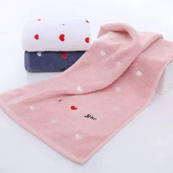 Soft 100% Cotton Embroidered Peach Heart Face Towel – 14x30 Inches, 3 Colors